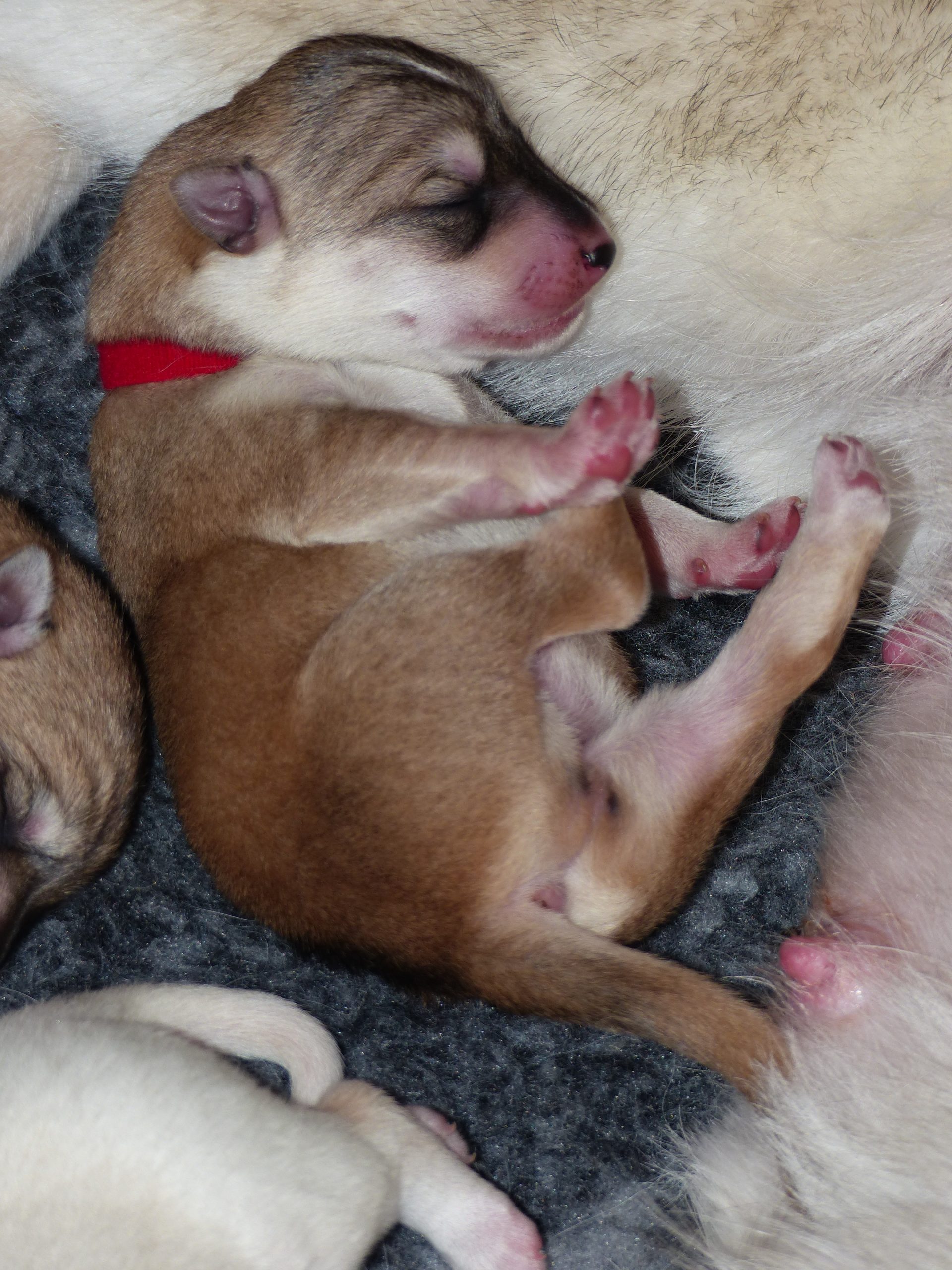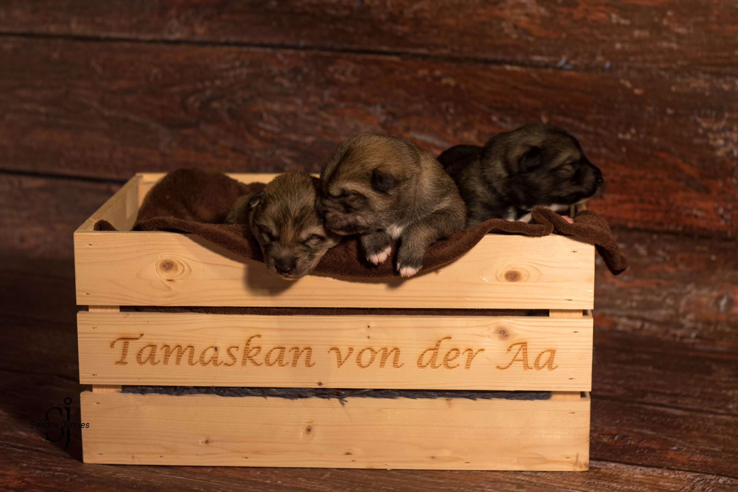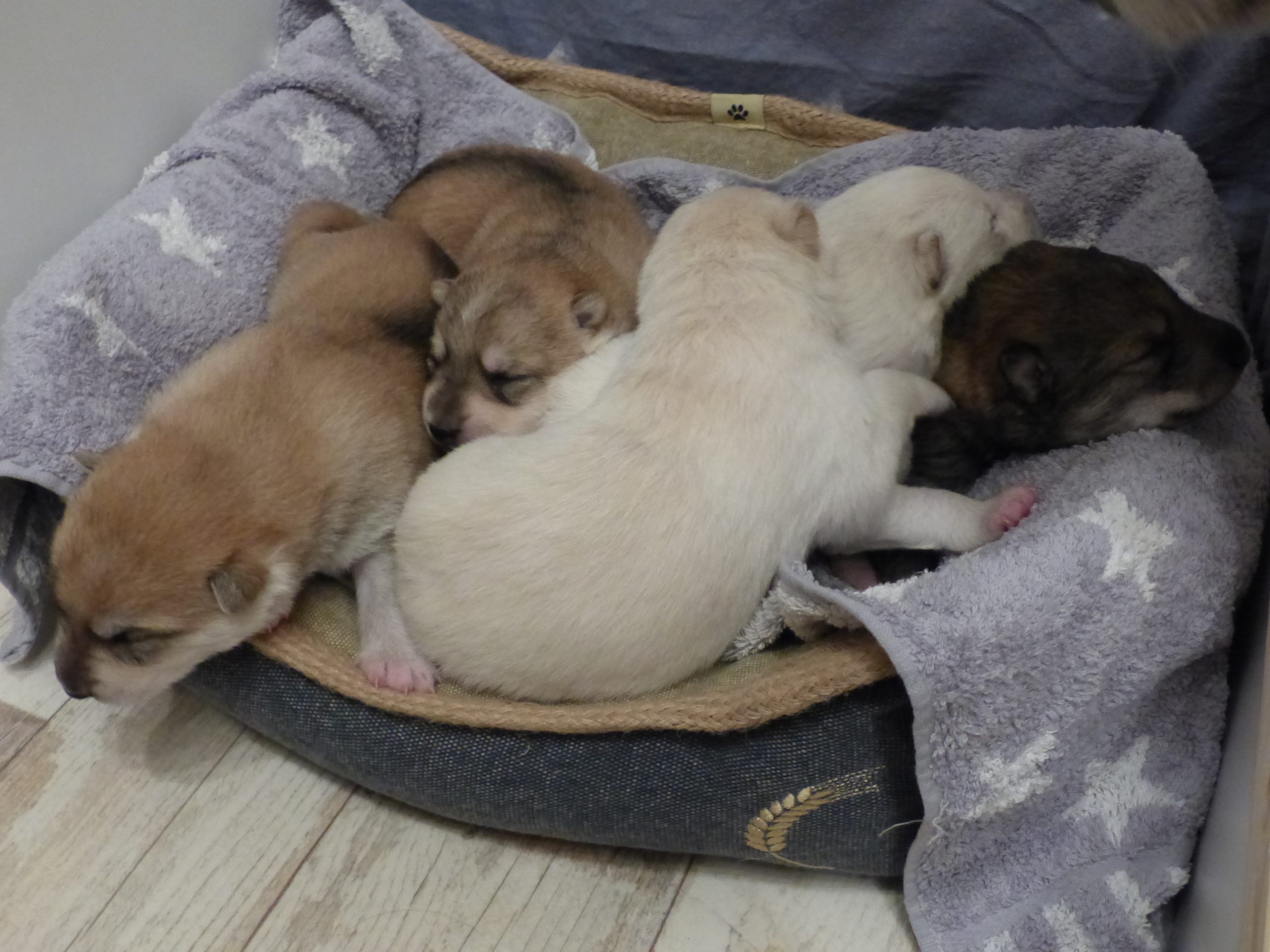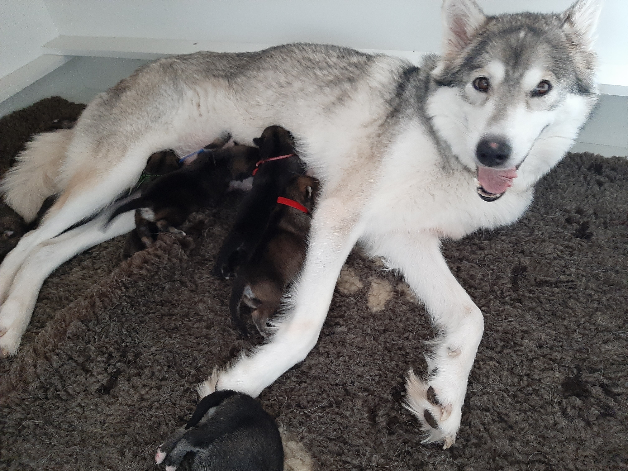 An Tag 63 bringt Lyca 6 kleine Wölfchen zur Welt. Die Geburt verlief recht zügig und Gott sei Danke ohne Komplikationen. Wir freuen uns jetzt auf eine schöne Welpenzeit.