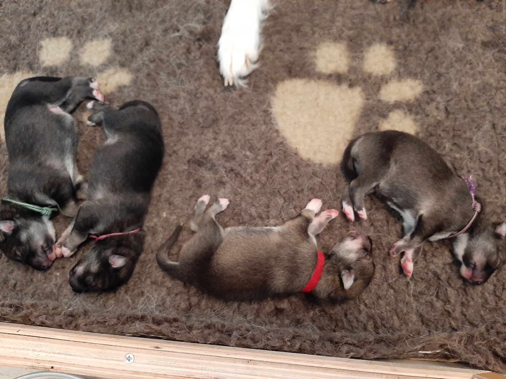 Am 09.12.21 erblickte unser C-Wurf das Licht der Welt. Wir freuen uns riesig über 5 Mädels und 3 Buben. Mit 8 Zwergen hatten wir nicht gerechnet und freuen uns nun umso mehr.