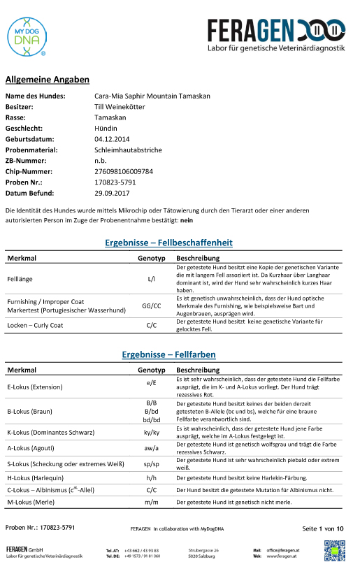 Um die Gesundheit der Rasse Tamaskan auch in Zukunft zu sichern machen wir eine komplette Gendiagnose mit dem Embark -Test seit 2021 bei allen unseren Welpen.